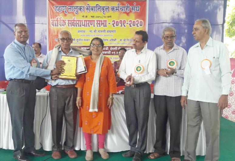 दरम्यान वयाची पंच्याहत्तरी गाठलेल्या सभासदांचा गुलाब पुष्प, शाल व श्रीफळ देऊन मान्यवरांच्या हस्ते सत्कार करण्यात आला. तसेच शैक्षणिक क्षेत्रात विशेष प्राविण्य मिळविलेल्या पाल्यांना गुलाब पुष्प व भेट वस्तू देऊन गौरविण्यात आले. तालुका पातळीवर उत्कृष्ट सेवानिवृत्त कर्मचारी म्हणून हेमंत धानमेहेर (कासा), मुरलीधर माच्छी (डहाणू), दिनकर राऊत (बोर्डी), हरिश्चंद्र जाधव (बाडापोखरण) व प्रकाश पाटील यांना सन्मानचिन्ह व प्रमाणपत्र देऊन गौरविण्यात आले. तर पालघर जिल्ह्याचे उप लेखापाल ज्ञानेश पुरंदरे यांनी सेवानिवृत्तांच्या समस्या सोडविण्यासाठी केलेल्या कामाबाबत त्यांना विशेष पुरस्काराने सन्मानित करण्यात आले.