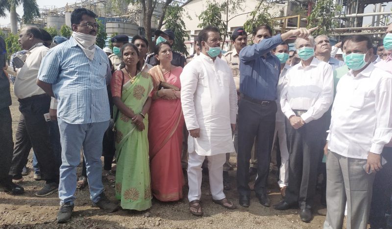 आज उद्यागेमंत्री देसाई व पालकमंत्री भुसे यांनी घटनास्थळाला भेट देऊन पाहणी करत बचाव कार्याचा आढावा घेतला. यावेळी खासदार राजेंद्र गावित, शिवसेनेचे संपर्क प्रमुख आमदार रवींद्र फाटक, आमदार श्रीनिवास वनगा, जिल्हाधिकारी डॉ. कैलास शिंदे, पोलीस अधीक्षक गौरव सिंग, बोईसरचे उपविभागीय पोलीस अधिकारी विकास गजरे, तहसीलदार शिंदे यांच्यासह संबंधित विभागांचे वरीष्ठ अधिकारी उपस्थित होते. यानंतर पालकमंत्री भुसे यांनी येथील तुंगा रुग्णालयात जाऊन जखमींची चौकशी केली. तसेच या घटनेची सविस्तर माहिती मुख्यमंत्र्यांना देण्यात आल्याचे त्यांनी सांगितले.