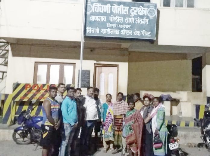 ही बाब श्रमाजीवी संघटनेच्या कार्यकर्त्यांना कळल्यानंतर त्यांनी घटनास्थळी जाऊन घडल्या प्रकाराची माहिती घेतली व तत्काळ पीडित कुटूंबाला चिंचणी पोलीस स्टेशनमध्ये नेऊन याबाबत फिर्याद दाखल केली. त्यानुसार पोलिसांनी आरोपी मालकाविरोधात अपहरण, अॅट्रॉसिटी, वेठबिगार प्रतिबंधक कायदा व विनयभंगाच्या कलमांखाली गुन्हे दाखल करुन तातडीने सूत्र हलवत अपहरण झालेल्या मजुरांची सुटका केली व आरोपीला बेड्या ठोकल्या.