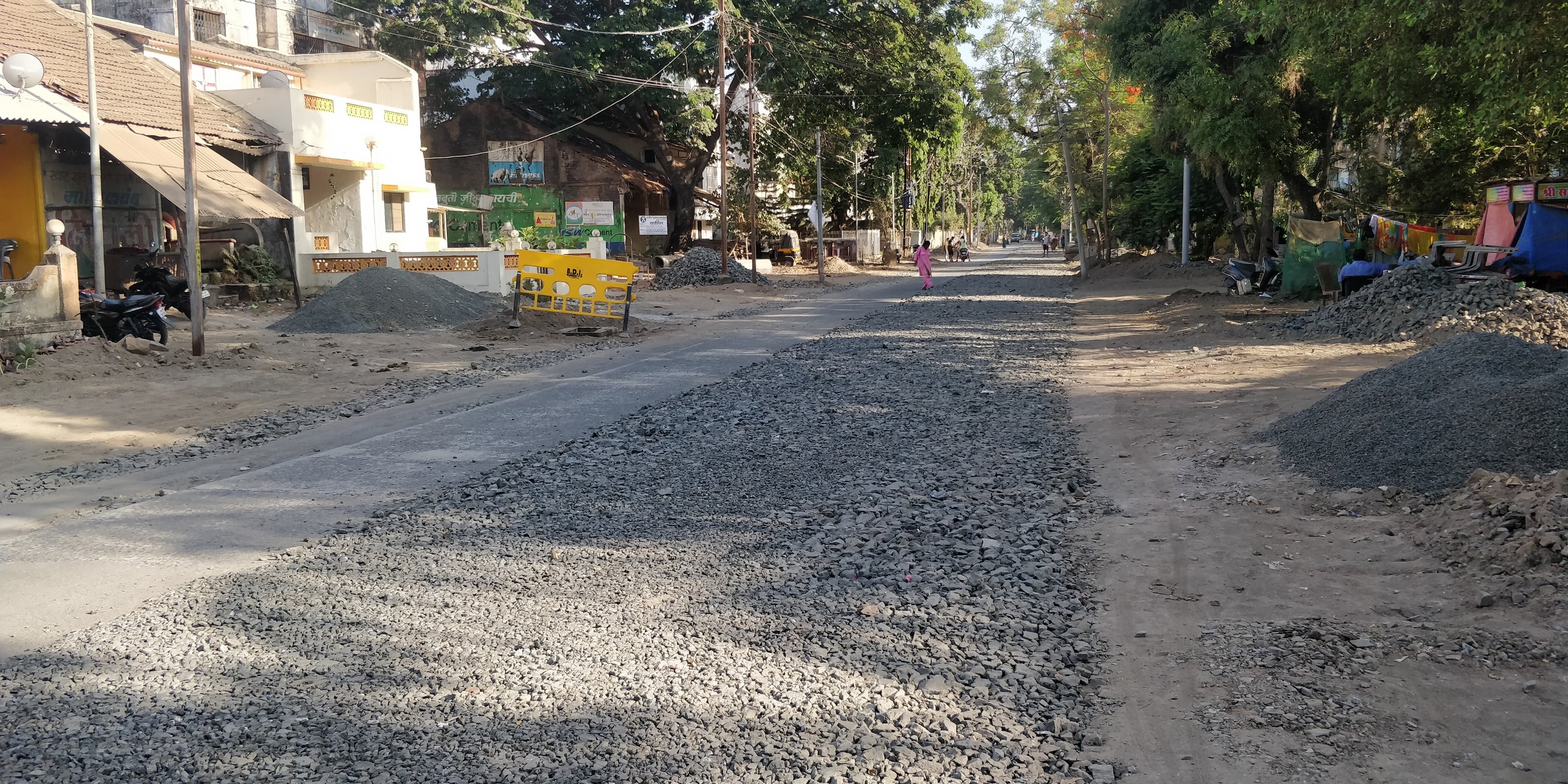 सध्याचे काम निकृष्ट दर्जाचे:- सध्या रस्त्याच्या साईडपट्टीवर आणि अर्ध्या रस्त्यावर दगड पसरलेले आहेत. हे दगड पसरताना नाममात्र डांबराचा वापर केल्यामुळे ते सहजच निघतात. त्यावर हॉट मिक्स पसरुन रस्त्याची बिले काढण्यात कंत्राटदाराला स्वारस्य आहे.
