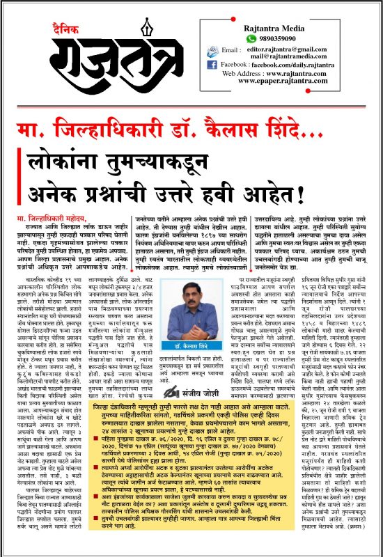 जिल्हाधिकारी डॉ. कैलास शिंदे, लोकांना तुमच्याकडून अनेक प्रश्नांची उत्तरे हवी आहेत!