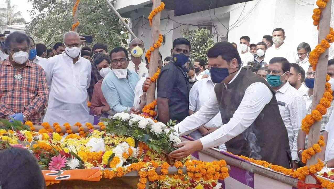 वाडा, दि. १० : माजी आदिवासी विकास मंत्री तथा पालघर जिल्ह्याचे माजी पालकमंत्री विष्णू सवरा यांच्या पार्थिवावर आज, गुरुवारी दुपारी 3 वाजेच्या सुमारास त्यांच्या मुळगावी वाडा येथे अंत्यसंस्कार करण्यात आले. यावेळी राज्याचे माजी मुख्यमंत्री व विद्यमान विरोधी पक्षनेते देवेंद्र फडणवीस हे सवरा यांना श्रद्धांजली वाहण्यासाठी वाड्यात आले होते. या प्रसंगी बोलताना त्यांनी सवरा यांच्यासोबत काम करतानाच्या जुन्या आठवणींना उजाळा दिला व सवरा यांनी केलेली कामे नेहमीच स्मरणात राहतील, अशा भावना व्यक्त केल्या.