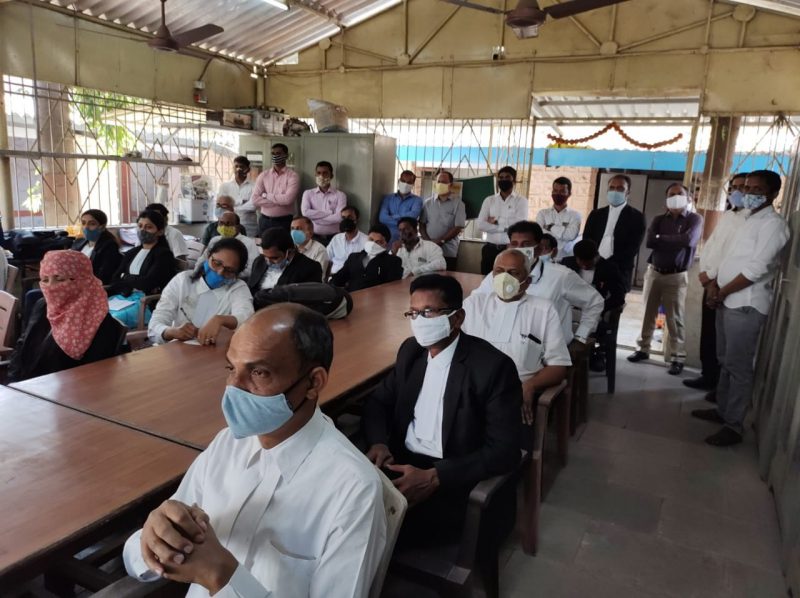 पालघर, दि. 25 : पालघर जिल्हा न्यायालयात जिल्हा न्यायाधीश तथा पालघर विधी सेवा समितीचे अध्यक्ष डी. एच. केळुसकर यांच्या अध्यक्षतेखाली आज, सोमवारी मराठी भाषा संवर्धन पंधरवडा साजरा करण्यात आला. पालघर बार असोसिएशनचे अध्यक्ष संजय पाटील यांनी कार्यक्रमाची प्रस्तावना सादर केली. तद्नंतर प्रमुख वक्ते दांडेकर महाविद्यालयाच्या मराठी विषय विभागाचे प्रमुख प्राध्यापक विवेक कुडू यांनी मराठी भाषा संवर्धन व आपली जबाबदारी या विषयावर सखोल मार्गदर्शन केले.