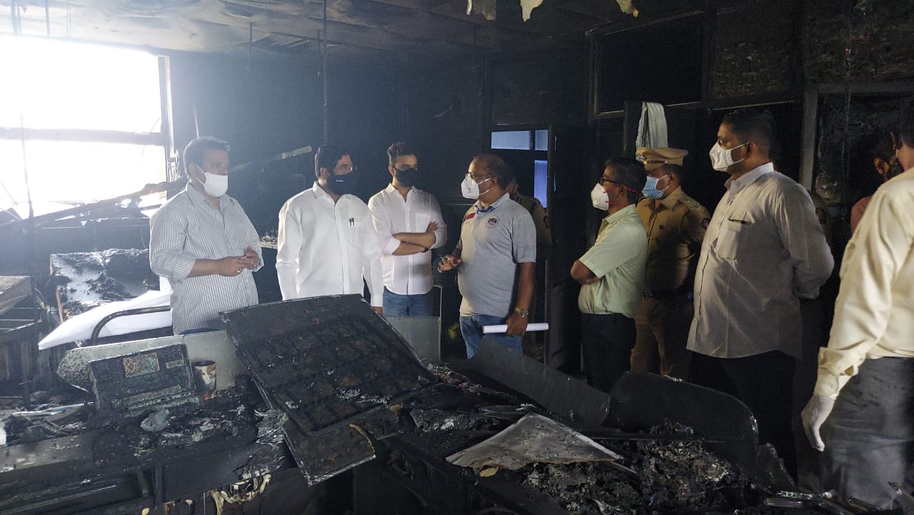 वसई, दि. 23 : नाशिकमधील ऑक्सिजन गळती दुर्घटनेमुळे संपुर्ण देश हादरला असतानाच आज मध्यरात्री 3.13 वाजेच्या सुमारास वसई विरार शहर महानगरपालिका हद्दीतील विजय वल्लभ हॉस्पिटलमध्ये शॉर्ट सर्किटमुळे आग लागून 13 कोरोना बाधित रुग्णांचा मृत्यू झाला आहे. या घटनेची माहिती मिळताच तातडीने पालकमंत्री दादाजी भुसे व त्यानंतर राज्याचे नगरविकास मंत्री एकनाथ शिंदे यांनी घटनास्थळाला भेट देऊन पाहणी केली. यावेळी दोन्ही मंत्र्यांनी घटनेबाबत माहिती घेऊन संबंधितांना घटनेच्या अनुषंगाने विविध निर्देश दिले. तर नगरविकास मंत्री शिंदे यांनी या दुर्घटनेतील मृतांच्या कुटुंबियांना राज्य सरकारने घोषित केलेल्या मदतीच्या व्यतिरिक्त महापालिकेच्या वतीने 5 लाख रुपयांची मदत जाहीर केली.