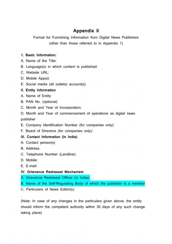 तसेच अशा प्रकाशकांनी एकत्र येऊन स्वयंनियामक समिती स्थापन करावी लागेल व अशा समितीचा सदस्य व्हावे लागेल. हि दुसऱ्या स्तरावरील अपील यंत्रणा असेल.