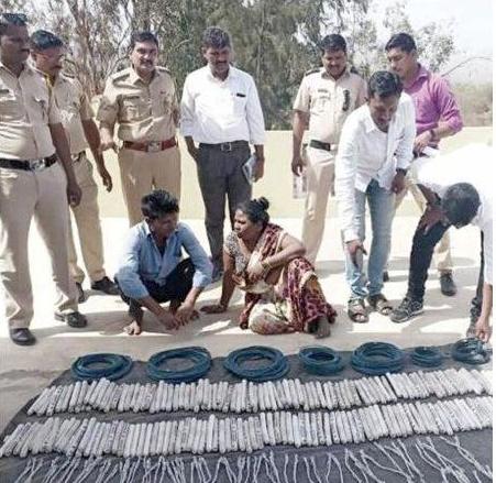 वसई, दि. 4 : वसई पूर्वेतील सायवन गावातील एका घरातून विरार पोलीसांनी आज 183 जिलेटीनच्या कांड्या व 448 डेटोनेटर असा स्फोटकांचा साठा जप्त केला असुन याप्रकरणी तुकाराम मारुती हडळ (वय 50, रा. सायवन) व त्याची पत्नी भीमा तुकाराम हडळ (वय 45) या दाम्पत्याला अटक केली आहे.