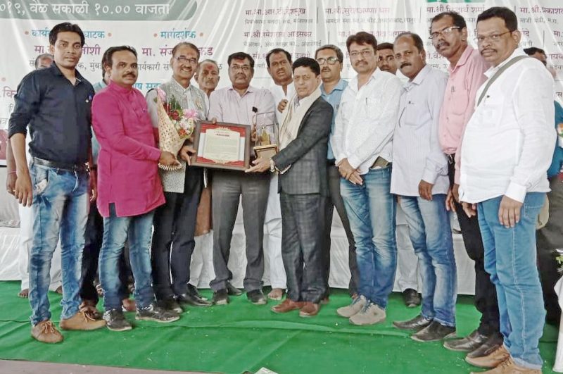 प्रतिनिधी/वाडा, दि. 11 : मराठी पत्रकार परिषद (मुंबई) या पत्रकारांच्या अखिल भारतीय स्तरावर काम करणार्या पत्रकार संघटनेतर्फे वाडा तालुका पत्रकार संघाला प्रतिष्ठेचा समजला जाणारा राज्यस्तरीय आदर्श तालुका पत्रकार संघ पुरस्कार देऊन गौरविण्यात आले आहे. रविवारी (दि. 9) बीड जिल्ह्यातील वडवणी येथे पार पडलेल्या तालुका अध्यक्षांच्या भव्य अशा मेळाव्यात पत्रकार परिषदेचे मुख्य विश्वस्त एस. एम. देशमुख, अध्यक्ष सिद्धार्थ शर्मा व दैनिक सकाळच्या औरंगाबाद आवृत्तीचे कार्यकारी संपादक संजय वरकड यांच्या हस्ते हा पुरस्कार प्रदान करण्यात आला. यावेळी मराठी पत्रकार परिषदेचे सरचिटणीस अनिल महाजन, विभागीय सचिव तथा दैनिक राजतंत्रचे संपादक संजीव जोशी, माजी आमदार केशव आंधळे, अंबा सहकारी साखर कारखान्याचे चेअरमन रमेश आडसकर आदी मान्यवर उपस्थित होते.